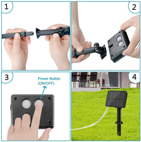 1.Colocar las luces de acuerdo a su gusto con el panel solar expuesto al la luz del dia.